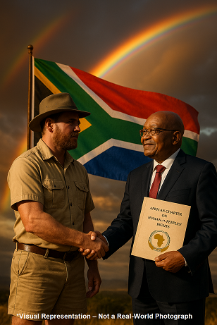 On Thursday, 9 October 2025, a historic human rights hearing took place — quietly, virtually, and without public access. Former President Jacob Zuma’s complaint against the South African state was heard on the merits before all eleven Commissioners of the African Commission on Human and Peoples’ Rights (ACHPR). In a powerful moment of unity, Reyno De Beer, a white Boer and President of Liberty Fighters Network, stood alone to represent Zuma — opposing the State’s senior legal team. Though the hearing remains confidential, the fight for truth continues — and history is being written beyond the headlines.